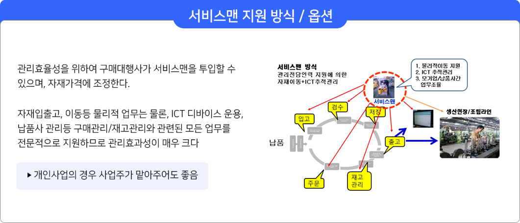 사업화 방안 설명 사업-1자동 납품방식 (수수료 방식) 사업-2자동 납품방식 (사용량 정산 방식) 사업-3사용량정산방식 자동납품 구매대행 사업2 자동납품방식 구매관리대행 서비스 (수수료방식) 구매대행사가 납품사에서구매하여 구매사에 판매하는 거래구조 – 구매고객사의 구매관리 기능을 단순 지원하는 서비스 사업– 일종의 전문 용역사업으로 구매관리+재고관리를 전문적 방법으로 수행하고 서비스 수수료를 지급받는다. (구매관리대행으로 볼 수 있음) 로지텍 코리아 ICT 시스템 운용기능 설명 K-VMI시스템 K-CPFR시스템 2개월 무료체험 참고 영상 보기 해외 시범사례 국내 시범사례 사업관련 동영상 설명 사업화 알아보기 사업화 방안 설명 자동 납품방식 (수수료 방식) 자동 납품방식 (사용량 정산 방식) 사용량정산방식 자동납품 구매대행 상호 : 로지텍코리아 | 대표자명 : 김덕한 주소 : 경남 창원시 성산구 완암로 50, SK테크노파크 테크동 710호 대표번호 : 070-4489-5301 | 메일 : dhkim@logitechkorea.co.kr Copyright ⓒ Logitechkorea All Rights Reserved